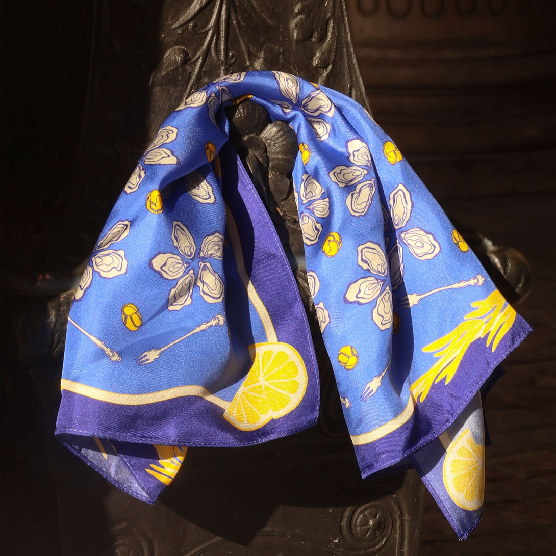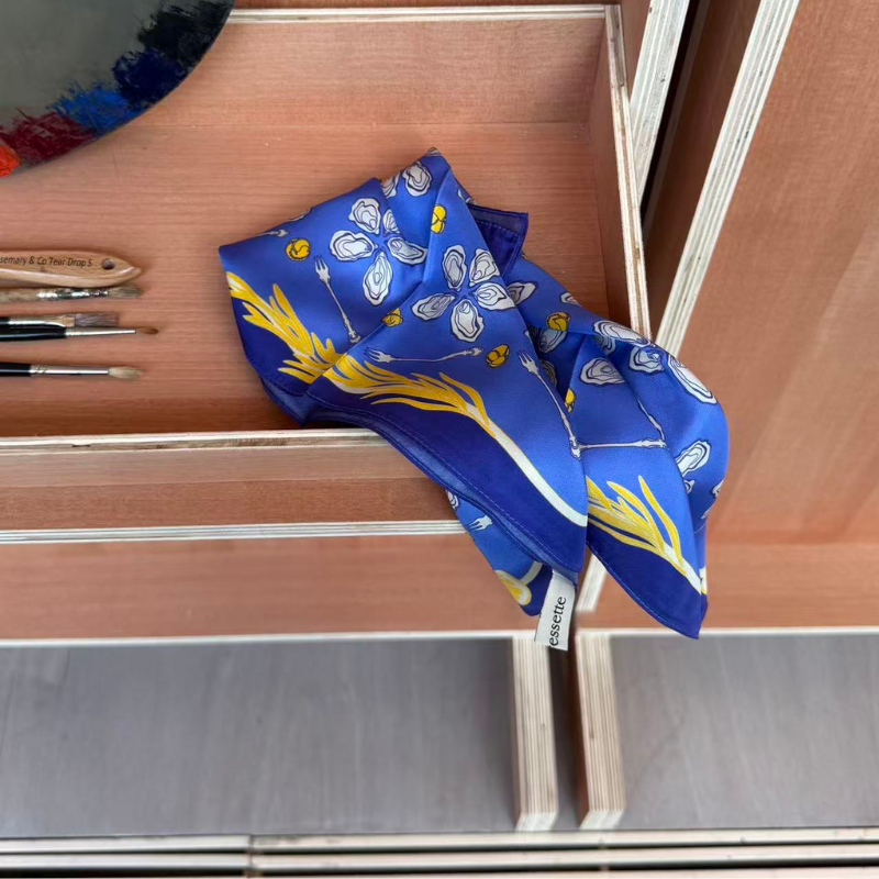 Inspiré par la fraîcheur iodée des plateaux de fruits de mer, le petit carré de soie "Gourmet" est une invitation à l'élégance des déjeuners en bord de mer. Cette pièce exquise de notre collection Les Gourmandises capture l'essence des plaisirs raffinés de la gastronomie française dans un accessoire chic et facile à porter.